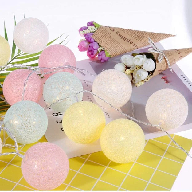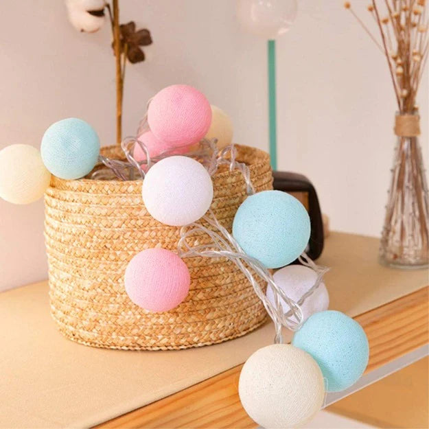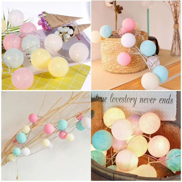 Add Soft, Cozy Charm to Your Space Create a serene and colorful atmosphere in your home withCotton Ball String Lightsinpastel colors. These high-quality decorative lights are perfect forDiwali, Christmas, and any celebration that calls for a warm, inviting ambiance. Whether you're decorating your bedroom, living room, or party space, these soft and charming cotton balls bring a whimsical touch to your decor.